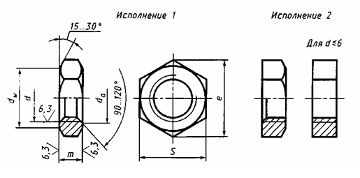Гайка шестигранная низкая, класс точности В ГОСТ 5916-70