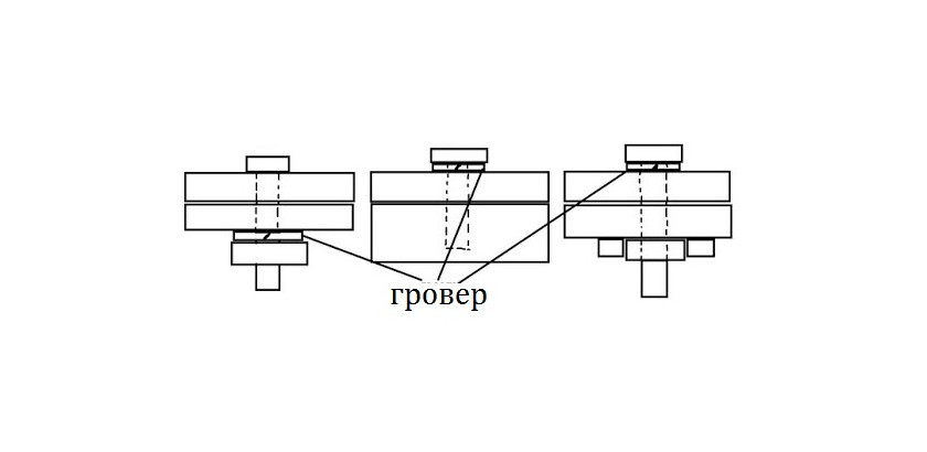 Учитывайте, что в таком варианте стопорящий эффект гроверной шайбы несколько ослабевает.